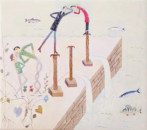 SVAMPAR OCH MÄNNISKOR akryl på duk 33×30cm 2025
