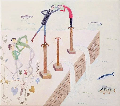 SVAMPAR OCH MÄNNISKOR  akryl på duk 33×30cm  2025